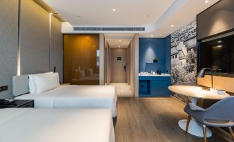 國慶期間差不多六百住的標間,因隔音差改了大床房。臨時改房間,馬桶沒清潔乾淨。酒店走廊有一股酸臭味。這家亞朵早餐餐廳也比較小,種類也少,感覺低於普通亞朵的水平。因為酒店房間電話壞了,響鈴沒聲。機器人送外賣沒聲音。然而我事先打電話給前台讓他們確定送了沒,他們説送了。我第二次電話給前台才説機器人顯示沒人接收。我就説前台有客人手機,完全可以打手機告訴我們。總之這家亞朵這次體驗非常一般。而且房間的燈光太暗,這點被多人詬病,但亞朵卻仍堅持其所謂氛圍感。我衹想説,我希望既有氛圍感,又有得選亮堂感,像其它連瑣酒店一樣。
