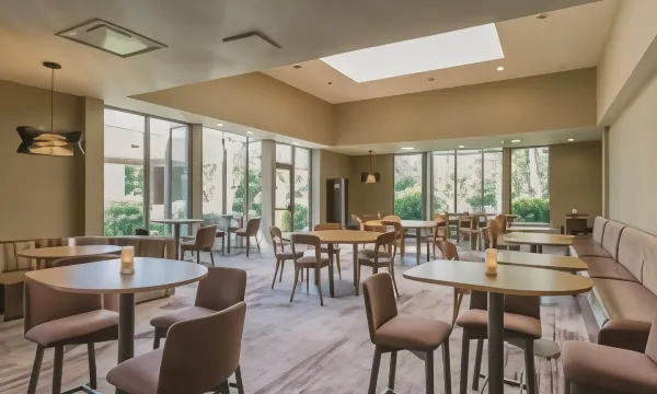 Friendly staff - Comfortable lobby and bar area - wish it wasn't raining - the fire pit outside is huge and offers lots of seating. I was there for an event - had drinks and dinner at the bar - delicious salmon dinner- a very large, affordable dinner. The bartender Lisa was friendly and is VERY good at her job. Her attention to detail is outstanding!