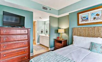 The condo features one bedroom and two baths with an open floor plan and private balcony, offering breathtaking ocean views. It has a king bed, a pull-out sofa in the living room, a fully-equipped kitchen, a washer and dryer, cable TV, and fast wi-fi. There are 2 bicycles available for those who enjoy an active lifestyle! For those who like to sit and relax, beach chairs and umbrellas are also available!