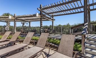 This charming first floor unit is located in Sandcastles on the Amelia Island Omni Resort. Within walking distance to the Omni, this place is perfect for convention attendees or Omni wedding guests. Full kitchen with granite countertops is fully stocked for any families cooking needs. Master bedroom has 2 Queen beds and an in suite bath. Master bedroom has patio access as well as living room. Boardwalk to the beach is less than 100 feet away!