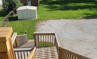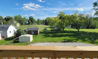 Great location for Nauvoo. Near historic places, temple, main shopping areas. Great communication with host. He promptly answered our texts and quickly addressed any concerns. We appreciated having 3 large beds in the home plus a sofa bed. The property itself is older, but the house inside is updated. I was concerned about the ceiling fan being too close to the upper bunk bed, so we just didn't use the ceiling fan, but it wasn't needed since several AC units in the apartment kept the house very cool on hot summer days. I would suggest replacing the ceiling fan with a normal light fixture for safety and switching to a brighter light bulb in the master bedroom. Kitchen is nice. Unit is on top floor, so you need to climb stairs to get to the apartment. We enjoyed watching the fireflies from the upper balcony at night. Place looked just like the pictures. We would stay here again.