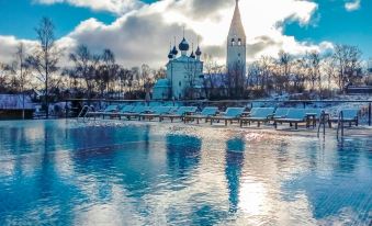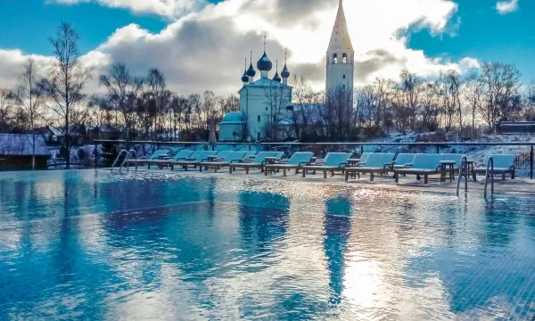 In the village of Vyatskoye there is a Russian Seasons bathing town with two black and two white steam baths. Nearby is the Vyatka SPA Hotel 5*, where guests can visit the sauna, salt room, massage room and indoor pool with thermal water, which has a beneficial effect on the body. In summer, there is a beach with a sun terrace, and an outdoor heated pool is available all year round. The Ukhtanka River, which flows through the village, offers opportunities for fishing and water activities. Guests can also rent sports equipment.