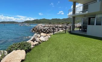 Luxury waterfront apartment with two absolute water frontage verandas If you wanted to be any closer to the ocean you'll have to be on a boat. This 3 bedroom apartment is located on the very private harbour entrance, front corner, ground floor. There are two verandas, with the front having magnificent open ocean views looking directly out over Cleveland Bay and across to the lights of Townsville 6 miles away. The harbour side veranda with it's exclusive use side yard is sheltered from the prevailing SE winds and great to relax on when to windy out the front. It has 180 degree views taking in the ocean, harbour and Mount Cook. The noise from ferries and other vessels is absorbed by the harbour's bolder walls making this a delightful spot to watch passing vessels and enjoy the company of the friendly resident Wallabies. With the side veranda being open to the yard, the wallabies will hop up right next to you to munch on a carrot whilst you enjoy an afternoon beer or wine. Catch a fish or crayfish on your doorstep and each year watch the whales. Stag Horn and other corals make for great snorkelling at the base of the front rock wall on a calm day. The locked harbour entrance side gate in your private yard makes this the only unit in the complex with direct access to the harbor side walkway, providing a far more pleasant 2 minute walk to the ferry terminal, buses, restaurants, shops etc. Inside this secure gated complex for your use, there's a gym and 4 spectacular pools, one roof top and 3 ocean front. You'll absolutely love Bright Point and Magnetic Island. This apartment is regarded by many of our guests as their best Island stay location and some have said, the best in the whole of NQ. Try and you’ll never want to leave. Lovely fresh sea breezes all year round where the Mozzies and Sandflies don't venture this far out, so no need for fly screens or closing up at dusk. You will love living on the Island, clean healthy air, no crowds, friendly locals, very little traffic, best medical system you'll ever experience and so on. The city is only a twenty minute ferry ride awayAbout pets:No pets allowed.About checkOut:Check out before 10:00 AM.About children:Children allowed: ages 0-17.About checkIn:Check in after 4:00 PM.About smoking:Smoking is not permitted.About minBookingAge:Minimum age to rent: 18.About events:No events allowed.