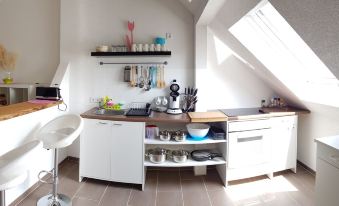 Near Europa Park Rust and currently Landesgartenschau Lahr 2018. Our apartment has 2 bedrooms (comfortable box spring beds), living room / bedroom (a box spring sofa), large bathroom with shower and toilet, kitchen, entrance area, balcony. Kitchen is fully equipped: microwave, kettle, toaster, Senseo coffee machine, oven, hob, fridge-freezer, pots, pans and everything you need for self-catering. The apartment offers space for 5-7 people for a relaxing holiday, on about 120 square meters.