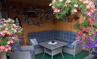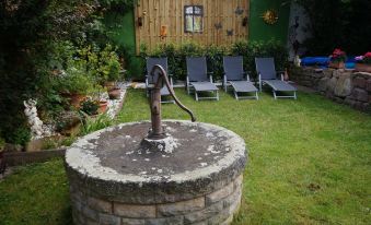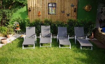 Our three seating groups, as well as the Hollywood swing in the courtyard and the lawn (5 relaxation loungers, 2 normal loungers) invite you to