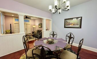 This New Orleans Masterpiece has been completely restored to its historic design and luxuriously upgraded with state-of-the-art modern conveniences. This beautiful two-story home will comfortably host 10 guests. The open dining and living rooms provide an excellent gathering space for guests to relax together after their adventures. The adjoining kitchens and sitting areas are equipped with GE Profile appliances and come complete with all the necessary utensils and cookware to create and serve your own New Orleans pièce de résistance.