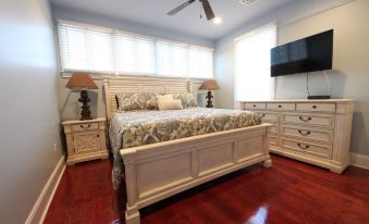 This magnificent, newly-renovated home easily accommodates large groups of guests, with room to spare. Numerous amenities provide unparalleled comfort, including 10 HD TVs, four full baths, two half baths, adjoining kitchen and dining areas, two living room spaces, two laundry areas, large lower level porch spaces, and two second floor balconies. The home comes with three off street parking spaces and includes key-less entry for your convenience.