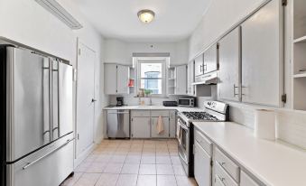 This spacious and bright 1,700-square-foot 5 bedroom, 2 full bathrooms the apartment has wood flooring throughout, elegant and original details, and large windows that bathe the space in light.
