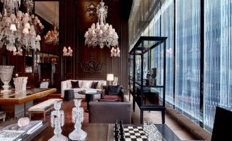 FEATURING BACCARAT CRYSTAL IN EVERY ROOM. BACCARAT HOTEL NEW YORK COMBINES THE NOBLE HERITAGE AND PERFECT CRAFT OF THE LEGENDARY FRENCH CRYSTAL COMPANY IN MIDTOWN MANHATTAN. GUESTS CAN ENJOY THE INDOOR POOL/FITNESS CENTRE/SPA DE LA MER AND SALON STYLE DINING SPACES FEATURING A MENU FROM CULINARY DIRECTOR AND TWO MICHELIN STARRED CHEF GABRIEL KREUTHER. FREE WIFI ACCESS IS AVAILABLE. EACH OF THE 114 REFINED GUESTROOMS AND SUITES IS FURNISHED WITH CONTEMPORARY PARISIAN DECOR. GUESTROOMS AND SUITES OFFER A FLAT SCREEN TV/ COMFORTABLE SEATING AND DESK. PRIVATE BATHROOMS INCLUDE EXCLUSIVE LUXURY TOILETRIES BY MAISON FRANCIS KURKDJIAN/SLIPPERS AND A BATHROBE. A 24-HOUR FRONT DESK WELCOMES GUESTS TO NEW YORK*S BACCARAT AND THE HOTEL PROVIDES A PERSONAL HOST WITH EVERY RESERVATION. ADDITIONAL AMENITIES AT THE HOTEL INCLUDE THE FIRST SPA DE LA MER IN THE U.S.A./ IN ROOM DINING/LAUNDRY AND CONCIERGE SERVICES. THE HOTEL IS CONVENIENTLY LOCATED ACROSS FROM THE MUSEUM OF MODERN ART AND 5TH AVENUE SHOPPING AND WITHIN WALKING DISTANCE TO CENTRAL PARK/ROCKEFELLER CENTER/TIMES SQUARE/ST PATRICK*S CATHEDRAL/RADIO CITY MUSIC HALL.