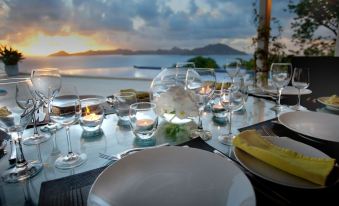 An exclusive two bedroom property, privately nestled in extravagant, lush landscaping. All completed with a 54' infinity edge pool overlooking the 'Narrows' to St Kitts and the gorgeous Caribbean Sea beyond. "As gorgeous as they are, the photos just don't do it justice" we hear time and again.