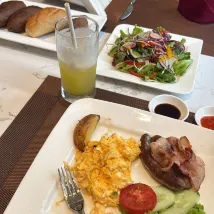 Overall, not bad for the price. My first towel I used did smell a little funky but I asked for a new one and it was fine. Buffet wasn’t very appealing, I stayed for 3 nights and mostly just had eggs and toast because most of the food wasn’t hot/fresh, you can tell it’s been sitting for a while. My first cup of coffee was not hot either, room temperature. So I stayed away from all that after. Buffet is 3/5. Overall, if you just looking for a place to sleep and in a good location, this place is good for the price.