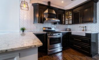Gold fixtures, herringbone tile, marble countertop and top of the line "Kingsdown" mattresses’ is just the beginning.