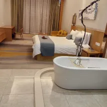 The room is very large and spacious. We specially booked a bathtub room. It was very comfortable to take a bath. The hotel provided disposable bath bags. There are plenty of parking spaces and it is very convenient. The car is friendly and pleasant. The room comes with snacks and goodnight milk, the breakfast is also good, and when you leave, the front desk scans the parking ticket and gives you warm water and snacks.