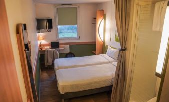 Welcome to ibis budget Bayeux with 24 hours reception desk. Enjoy rooms for 1, 2 or 3 people, equipped with a private bathroom and toilet, AC and free high-speed WIFI. Kick-start your day with our unlimited buffet from 6.30am to 9.30am on weekdays and from 6.30am to 10.30am on weekends. Take advantage of our private car park, closed from 11pm to 6am. Dine at the Courtepaille restaurant open 7 days a week.