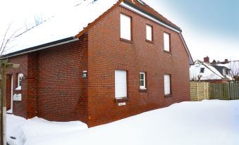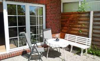 Apartment house, 2 storeys. In the resort, in a central position, 400 m from the sea, 400 m from the beach, in a cul-de-sac. In the house: central heating system. Parking at the house. Supermarket 1.7 km, restaurant 500 m, bakery 250 m, bus stop 500 m, railway station 1.5 km, ferry 1.5 km, sandy beach 400 m, outdoor swimming pool 14 km, indoor swimming pool 500 m. Golf course (18 hole) 8 km, surf school 800 m, tennis 4 km. "Seehund", 2-room apartment 65 m2, on the ground floor. Bright, simple furnishings: living/dining room 21 m2 with 1 double sofabed (1 x 140 cm, length 200 cm), satellite TV and radio. Exit to the terrace. 1 double bedroom 10 m2 with 1 double bed (2 x 80 cm, length 190 cm). Kitchenette (4 hot plates, oven, dishwasher, toaster, kettle, microwave, electric coffee machine) with dining table. Shower/WC. Terrace furniture. Facilities: children's high chair (extra). Please note: non-smokers only. Maximum 1 pet/ dog allowed. Smoke alarm.