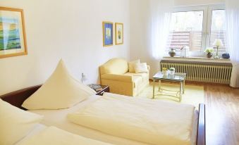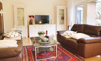 The bungalow is decorated with paintings by the landlord and artist Wilhelmine Poppinga. You can also purchase all pictures. Other works of art can be viewed in the artist's house.