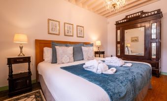 Outside, the two cottages rentals share a covered veranda with a barbecue grill, a pool, a croquet court, a large fenced garden and a private parking.