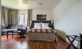 Lovely cosey and clean room. Staff were very friendly. Had a lovely meal at the restaurant. Order at the counter and they serve out the food. Went outside the hotel in the evening to look for the northern lights. Super spot! Had a great evening out and warmed up inside inbetween with free hot chocolate.
