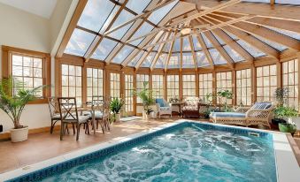 The second floor room with attached bath will be clean, comfortable and relaxing. You can enjoy your private space which has everything you need, or take advantage of all the outside space and wander around, find the brook, visit the sheep or just stroll around the 45 acres of fields. Take time to relax in the small indoor heated pool with jets to ease your weary body. Need to watch something on TV? there are smart TVs in each room and a common area living room with cable. At this time no meals are offered at the Inn.