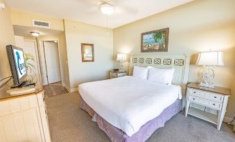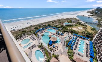 At the property manager... Beautiful, 2-bedroom, recently remodeled condo at North Beach Resort. Once you enter through the entryway, your oasis awaits! Equipped with full-sized appliances, including a washer/dryer in the condo. Each bedroom has LCD TVs. Full-sized kitchen with dining room table, and a spacious couch that the family can enjoy! The dining room has enough seating for the whole family! In the living room, you will see an amazing view of the ocean. The main bedroom also has great views of the ocean and its private bathtub! Smart TVs throughout this condo and recently remodeled with new flooring and decor make this condo unique! Amazing ocean views from the balcony are the perfect setting for your morning coffee or evening cocktails. There are a total of two queen beds, one king bed and a sleeper sofa. This condo sleeps up to 8! Enjoy an array of amazing onsite amenities including in/outdoor pools, kiddie pools, lazy river, hot tubs, and fitness room.