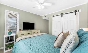 This beautiful and comfortable first floor condo is perfect for your family vacation and is only a few steps to the sandy beach. A beach dolly with large inflatable tires and 4 beach chairs are provided to make your trip across to the beach a breeze. Strap on your cooler and chairs and enjoy a full day on the beach or spend some time at the beautiful, large, well maintained pool also just steps away from your front door.