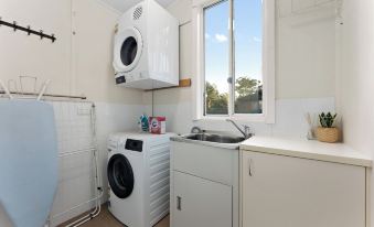 The accommodating home boasts two full bathrooms stocked with pampering towels and essential toiletries to ensure a carefree stay.