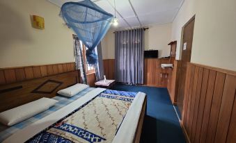 Room Cleanliness and Comfort: Rooms are highlighted as clean, tidy, and well-maintained, with some featuring spacious layouts, separate dry/wet bathrooms, and warm blankets. The wooden house design and landscaped surroundings contribute to a cozy and welcoming atmosphere.(based on 2 reviews)