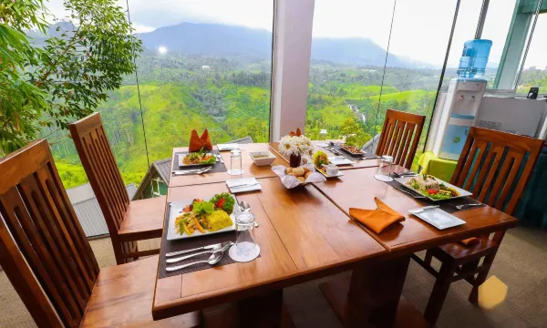 Super relaxing view. Never forget the water fall and mountain view from the room. One of best place to see the sun rising. We had Nasi and club sandwich from the menu for lunch. It was ok and breakfast buffet Fresh avocado juice/ Cereal / Fresh cut fruits / Dosa / rice/ sausages / bacon / live egg station and many more (Less variations but Food was satisfied) If you travel dont carry a big luggage to property because its a rally hard work for staff sty to have a small back pack.