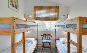 Single-family house, built in 1978. 225 m from the sea. Private: property 1'183 m2, well-kept garden. Barbecue (swing). In the house: washing machine, tumble dryer. Parking at the house. Carport. E-charging station. Grocery 2.2 km. Golf course 4.7 km. The owner does not accept any youth groups. "Simon" - 225m from the sea", 4-room house 103 m2. Object suitable for 4 adults + 4 children. Living room with TV. 1 room with 1 double bed. 1 room with 2 x 2 bunk beds. 1 room with 1 double bed. Kitchen (oven, dishwasher, 4 ceramic glass hob hotplates, microwave, freezer). Shower/WC. Terrace 35 m2, roofed. Facilities: children's high chair, baby cot. Internet (WiFi). Please note: non-smokers only. Bookings accepted for holiday purposes only. 306-28708