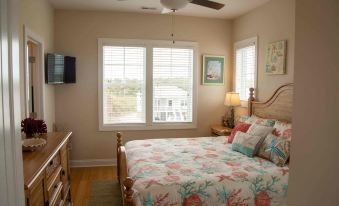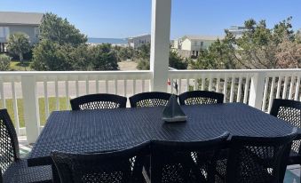 Inside, you find this home to be open and light, providing the perfect place to spend a week or weekend at the beach. You will find plenty of room for privacy as well as entertaining, with a fully stocked modern kitchen complete with a large island for gatherings. Two master bedroom suites with full baths and comfortable king beds await. The third bedroom has two full size beds and the fourth bedroom has bunkbeds with a full on the bottom, allowing 11 to sleep comfortably.
