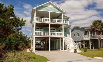 This is a spacious 4 bedroom/3.5 bath home and is perfectly located in the center of Oak Island. Relax on the two front decks and enjoy ocean views and the sounds of the waves. There is an indoor elevator that connects from the ground to the 2nd and 3rd floors for easy access.