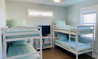 4 bedrooms: 2 bunk beds 1 queen bed and 2 king beds