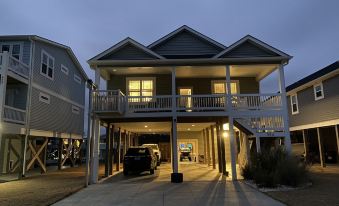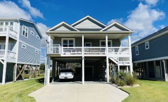 Beautiful beach house with ocean views on the quiet, west side of Oak Island. Steps to the beach access, outdoor shower, large porch, washer/dryer, lift, storage, beach chairs, tent and gear included. Amazing property just minutes to shopping, restaurants, parks and entertainment; perfect for family getaways!About pets:Pets allowed: dogs less than 50 lbs per pet (limit 2 pets total).Pets are not allowed on the furniture..About checkOut:Check out before 10:00 AM.About children:Children allowed: ages 0-17.About customRules:Dogs are not allowed on the furniture. If there is excessive shedding, urine spots, or damage from pets it may result in a deduction from your deposit.Check out instructions need to be followed to ensure the next guests have as good a stay. If not followed, may result in a deduction from deposit..About checkIn:Check in after 4:00 PM.About smoking:Smoking is not permitted.About minBookingAge:Minimum age to rent: 28.About events:No events allowed.