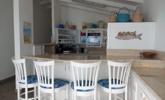 Located in a quiet part of town on the south-eastern coast of the island, this vacation home is only minutes from the airport. This ensures stress-free transit on arrival and departure, though many of the island’s prime sites are a bit of a drive. A rental car is strongly recommended as there are few points of interest within walking distance.