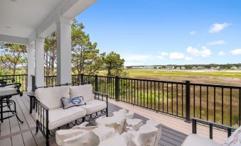 Our home includes an elevator, 2 king bedrooms, 2 queen bedrooms, 2 bunk beds with two trundles, and a king size sleeper sofa on the 2nd floor. The kitchen is spacious, with 2 dishwashers and flows into a spacious living room with unbelievable views of the ICW! There are washer and dryers on BOTH floors for your convenience. A ping pong table allows for some fun for the kids and adults. There is an ice maker downstairs to ensure your coolers for the beach will be full at all times! If you want the best of both worlds, total privacy and a short walk to beach access, this is your home away from home!