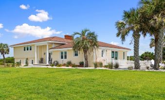 Founder's Manor is the home of Ocean Isle Beach founder, Odell Williamson and his wife Virginia. The home sits atop a 4-lot tract known as Gause's Hill. It is surrounded by undeveloped land and offers a panoramic, unobstructed view of both the Atlantic Ocean and Jink's Creek. Founder’s Manor is centrally located and is less than 1/4 mile (2-4 minute walk) from many of the island’s most popular destinations. Some of these include: the Ocean Isle Beach Town Park, The Museum of Coastal Carolina, The Ocean Isle Beach Pier, River Country Mini Golf, Sunset Slush, Ocean Isle Beach Creamery, Jink’s Creek Waterfront Grille, Pelican’s Perch, the Islander Inn and the Ocean Isle Inn. Additionally, the Ocean Isle Beach Chapel is across the street for those who are interested in a destination wedding or attending a local church service while visiting. The split level home has 4 floors offering: 5 bedrooms, 3 and ½ baths, two kitchens, a formal dining room, a formal living room, a den/reading room, a sun porch, and the Island’s only basement. All bedrooms have a view of the ocean or Jink's Creek. There is a sizable concrete patio space for outdoor entertaining as well as large grassy areas suitable for an ocean or sound view tent should you wish to host a celebration (permit required depending on tent size). Rentals will also include access to the exclusive Isles Beach Club for the duration of your stay. Whether you are a family traveling from out of town, a bridal party looking for a beautiful setting for your celebration, or an individual looking for a local getaway, Founder’s Manor offers a unique, picturesque location that is truly one of a kind.About pets:Pets allowed: dogs (limit 2 total).About checkOut:Check out before 11:00 AM.About children:Children allowed: ages 0-17.About customRules:Events for more than 20 guests require prior authorization from the owner, payment of the site fee and a signed event contract..Noise ordinance: Town fines for noise disturbances between10p.m. to 7:30 a.m. are from $100- $1,000 for1st offense. 2nd offense is $200-$1,200..About checkIn:Check in after 4:00 PM.About smoking:Smoking is not permitted.About minBookingAge:Minimum age to rent: 25.About events:Events allowed: family gatherings, birthday parties, weddings.Maximum event attendees: 99,Town tent permit required if larger than 20 x 20.