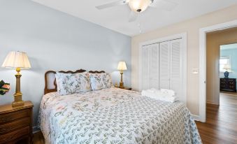 Our family had the pleasure of staying one week at Founder's Manor. We have been visiting OIB off and on since 2007, and this house has always intrigued us. The inside was exactly like the photos shown, and the furnishings are authentic and beautiful. We had more than enough room for our family. The beds and pillows are extremely comfortable. Having two full kitchens in the house was an added bonus. The most amazing part for us was the amount of privacy you have with such an enormous lot. Although not technically oceanfront, you have unobstructed views of the ocean, and also Jink's Creek. It was so nice not having loud neighbors right on top of you. So much of OIB has been developed in the last few years so we enjoyed this extra space. Marnie is extremely easy to communicate with and offered additional information about the Tuesday market and Friday night concert without us even asking. One of our favorite parts was attending church on Sunday just after Tropical Storm Chantal had passed by. This was our first visit to the chapel built in honor of Mrs. Williamson and that made it even more special. We would definitely stay here again. Thank you for sharing your piece of family and history with our family.