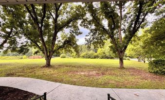 Century Farmhouse sits on 7 acres with a spacious open field and a large front and backyard bordering a creek and cove on Lake Keowee. There is plenty of space for parking boats, trailers, and campers. However, please note that there are currently no hookups available for campers or RVs.