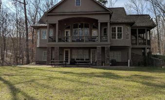 For a Family looking for a home with 6 BR's and a dock, this is a great choice as long as you come prepared to share 4 bathrooms among 6 BR's. Dock includes canoe and kayaks. Large back yard -- great for kids to play in and a fire pit for s'mores.