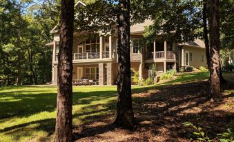All modern convenience, beautiful private home located on 4.75 acres in private deep water cove with 2 covered deep water dock's & platform dock, very private, swimming, boating, canoe & 2 Kayaks available, water skiing, put in power boats at HighFalls Park boat ramp around corner 5 Minutes, camping, hiking. Six bedrooms, five with queen beds, bonus room with 4 single beds, sleeper sofa. and blowup mattresses available, 4 full baths on level 1 and 2. 3 levels, 2 family rooms each with TV, 2 upper decks, gas grill, gas fireplace, fire pit, covered patio, 2 car garage, deep water cove, short easy walk to water and dock. cable TV, WiFi.