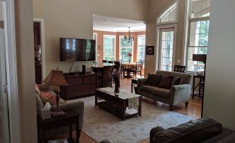 About pets:Pets allowed: dogs and cats less than 50 lbs per pet (limit 3 pets total).With owner approval and pet fee..About checkOut:Check out before 10:00 AM.About children:Children allowed: ages 0-17.Yes.About customRules:CANCELLATION POLICY: If the owner is able to rent the dates canceled to another guest then all funds will be returned regardless of cancellation date..Trash disposal: No liquids in trash except in sealed container. Roll trash carts out Sunday night for early Monday am pickup except holidays -Tuesday,The cleaning service will/must take extra care in cleaning common surfaces, door knobs, etc. as instructed..About checkIn:Check in after 4:00 PM.About smoking:Smoking is not permitted.Outside only.About minBookingAge:Minimum age to rent: 18.About events:Events allowed: family gatherings, birthday parties, weddings.Maximum event attendees: 40,No drinking allowed under 21 years of age.