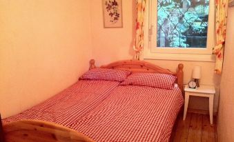 Rustic but modern furnished holiday home, approx. 70 sqm to live alone. Idyllic on the edge of a forest on a hillside, outside the district of Zell-Weierbach, nestled in the forest and vines with a beautiful panoramic view of the Rhine Valley, Strasbourg and the Vosges. 2 bedrooms for up to 4 people. Living and dining room with TV, bathroom with shower, sep. WC, new kitchen fully equipped with dishwasher. Tiled stove u. Electric night storage heaters, dishwasher, washing machine. Terrace about 40 square meters, half covered. Terrace furniture, garden grill, very quiet location, fenced property, ideal for pets, parking at the house. Non smoking house
