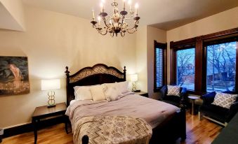 An elegant apartment within the historical house built by Don Maguire in 1891. This flat has 900 square feet to unwind and relax. Sleeps 5. A King bed in the bedroom. A queen futon and a pull-away twin. This charming gem is located in the heart of Ogden city’s art district on historic 25th street. Within walking distance to downtown restaurants, bars, shopping, and entertainment. Onsite parking. Next to OGX stop and close to transportation to the ski resorts. Whether it is a room you are looking for on a business trip or a weekend getaway, we can accommodate! The unit is on the second floor so it does require guests to go up a flight of stairs. Because of the historic nature of the building and because of other tenants in the building, we prohibit children under the age of 8. And pets are also prohibited.About pets:No pets allowed, service animals permitted.About checkOut:Check out before 11:00 AM.About children:Children allowed: ages 13-17.About checkIn:Check in after 4:00 PM.About smoking:Smoking is not permitted.About minBookingAge:Minimum age to rent: 21.About events:No events allowed.