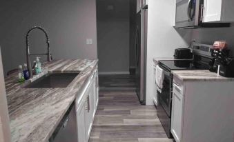 This host left a minimal amount of essentials for us to use while at this place, 1 bath towel / person, plus 1 washcloth, no hand towels provided in either bath so we used our washcloths, coffee maker was a small 5 cup carafe, 2 12 cup coffee makers in the cupboard but missing the carafes, no end tables and minimal seating in the living room, both bathrooms need updated, would not use this host again.