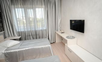 The modern rooms of the hotel are fully equipped with a set of appliances and furniture that you may need during your stay. The spacious rooms have comfortable beds, TV, air conditioning. The bathroom is equipped with slippers and a hairdryer.