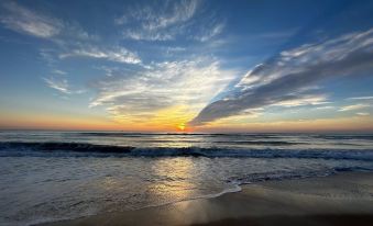 Enjoy stunning sunrise views from your beachfront 2BR, 2.5BTH condo. The kitchen is fully stocked with major appliances, including a coffee maker, toaster, and microwave. The open living and dining room is perfect for family gatherings. A new recliner sofa faces a 60-inch TV. All beds have new mattresses, and bed and bath linens are provided. You're just a 7-10 minute drive from Daytona's major attractions.