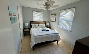 Go back to a time of simplicity, choose a vinyl record from our growing collection, listen to the music flow through your ears and just vibe out while enjoying a warm cup of coffee, margarita, or a glass of wine. This colorful MCM beach property offers a comfortable retreat for guests to have a FABULOUS & MEMORABLE stay! Amenities include; a brand new memory foam KING size bed, 2 brand new memory foam QUEEN size beds, all BRAND new furnishings, large refrigerator, fenced in backyard for Fido, an iron, AC, heating, hair dryer, WiFi, a washing machine and dryer.