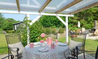 The bungalow is located in the greenery & in a quiet location in the Baltic resort Boltenhagen. To the popular pier and the fine Baltic beach it is only about 850m. It has a cozy living-kitchen area with fireplace, sitting area, smart TV, bedroom, shower / toilet, two terraces, free wi-fi, washing machine and parking space. The kitchen is fully equipped with dishwasher. There is a fiber optic internet connection, so the wifi is pretty good and you could also work on the side. Your car is parked free of charge directly in the yard, but you can reach everything in Boltenhagen on foot. You can also find the Bngl. on the page of the Tarnewitzer Hof in Boltenhagen.