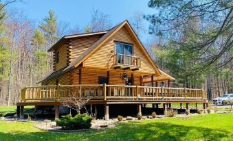 This beautiful log home sits on almost 6 acres and will fulfill your need of fresh mountain air and serenity. Our home is cozy and welcoming, an open loft design makes it spacious and the pine logs give an authentic cabin experience. This home is newly equipped with central air conditioning. Its 15 minutes from All Star Village in Oneonta,10 minutes from Gilbert Lake state park and 25 miles to Cooperstown. Please note there are 2 outdoor security camerasAbout pets:Pets allowed: dogs less than 20 lbs per pet (limit one pet total).Small breeds are welcome.About checkOut:Check out before 10:00 AM.About children:Children allowed: ages 0-17.About checkIn:Check in after 4:00 PM.About smoking:Smoking is not permitted.About minBookingAge:Minimum age to rent: 25.About events:No events allowed.