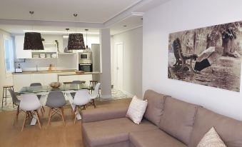 - Living room - Open kitchen, very spacious of 35 m2, which has a sofa bed of 1.50 cm, a good TV, kitchen with modern appliances, a bar and a dining table that can accommodate up to 10 people and of course provided with all the necessary utensils to be able to cook and enjoy a stay as comfortable as possible.